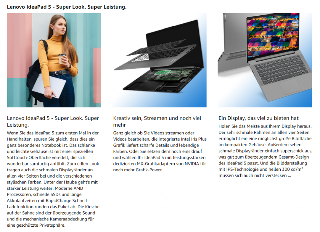 Bei Amazon kriegt ihr nämlich derzeit den 14 Zoll grossen Laptop IdeaPad 5 mit AMD Ryzen 5 4500U CPU, 8GB RAM und 512GB SSD zum Aktionspreis von knapp 581 Franken nach Hause geliefert, den günstigsten Vergleichspreis gibts beim Lenovo Shop selbst, wo die konfigurierte Version 739 Franken kosten würde. Beachtet jedoch, dass es sich beim Modell von Amazon um dasjenige mit deutscher QWERTY-Tastatur handelt.