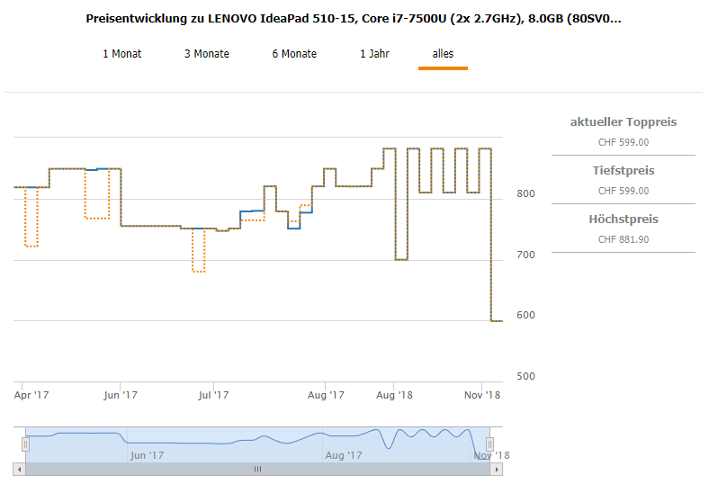 Das Gerät gab es laut Toppreise noch nie für unter 680 CHF.