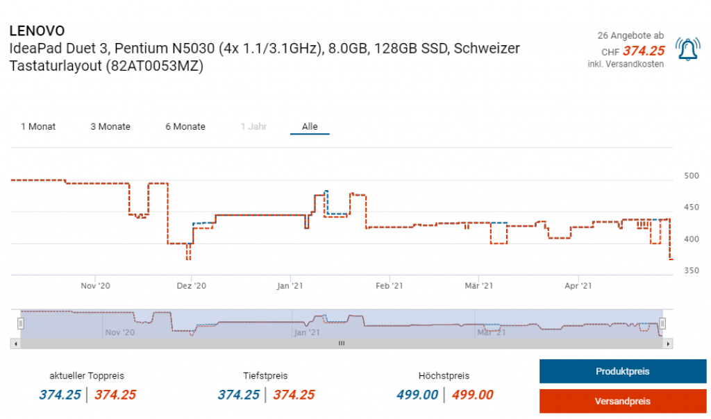 Im Lenovo Store gibts derzeit das Tablet-Convertible Lenovo IdeaPad Duet mit Intel Pentium N5030 Quadcore-Prozessor zum Aktionspreis von CHF 374.25. Gewiss ist es nicht so leistungsstark wie die Intel i-Serien, allerdings ist der Preis auch genügend tief um diesen Umstand zu kompensieren. Das Display dürfte dabei eines der Highlights sein.