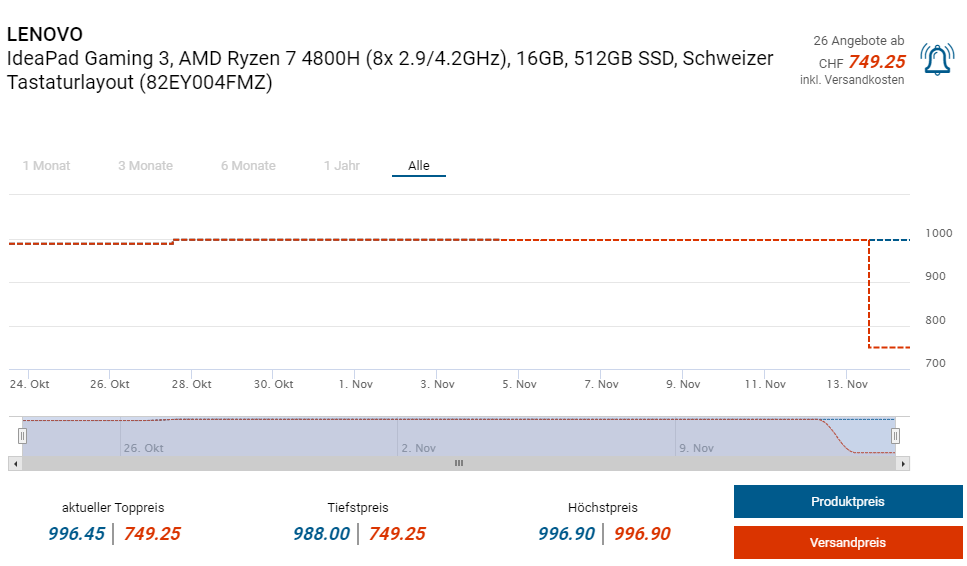 Ich habe für meine Konfiguration vor ca. 3 Monaten sogar 87 Franken weniger bezahlt.