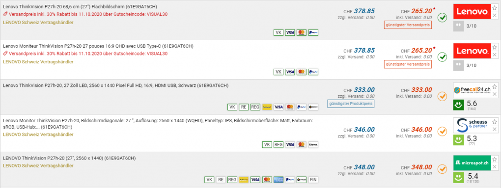 Ich habe den ThinkVision P27q-20 gekauft für 191.33 CHF statt für 382.65 CHF