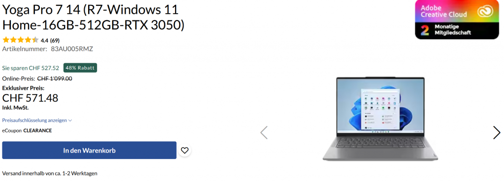 Das Lenovo Yoga 7 Pro bringt alles mit was man braucht und mit der RTX 3050 in der Refreshvariante mit 6GB sogar noch etwas mehr Power und für rund 570CHF m.M nach unschlagbar.