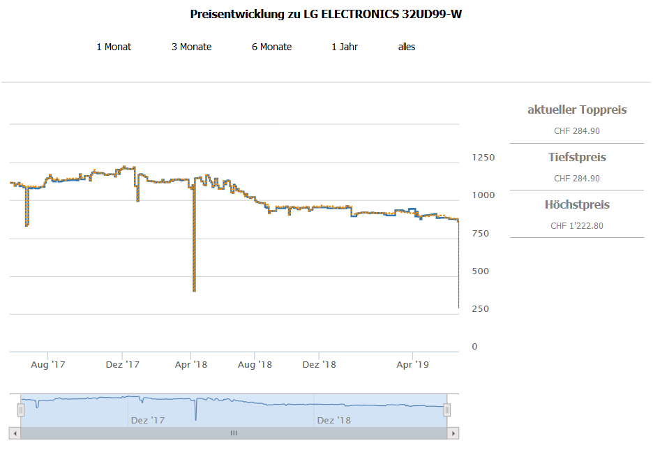Bei dem von Ihnen bestellten Artikel LG 32UD99-W, 32 wurde leider ein falscher Preis in unserem Shop angezeigt. Hierbei handelt es sich um einen offensichtlichen Irrtum.