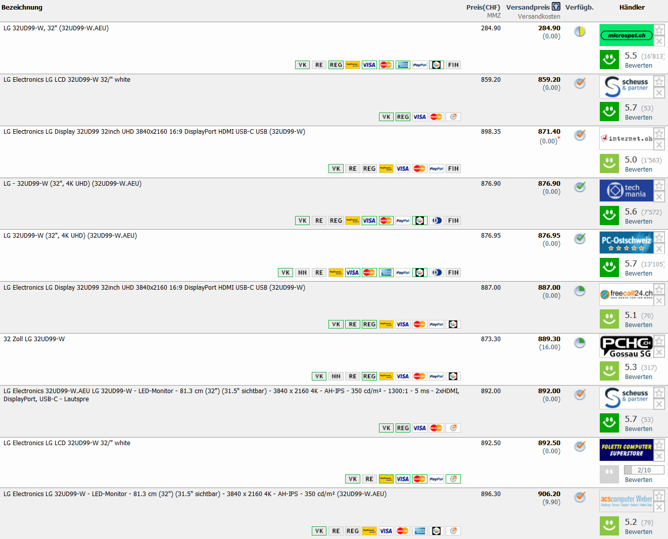 Ein Top 4k-UHD-Monitor zum Schnäpplipreis. ID 269.90 CHF, microspot 284.90 CHF. Drittbester Preis erst bei 859.20 CHF.