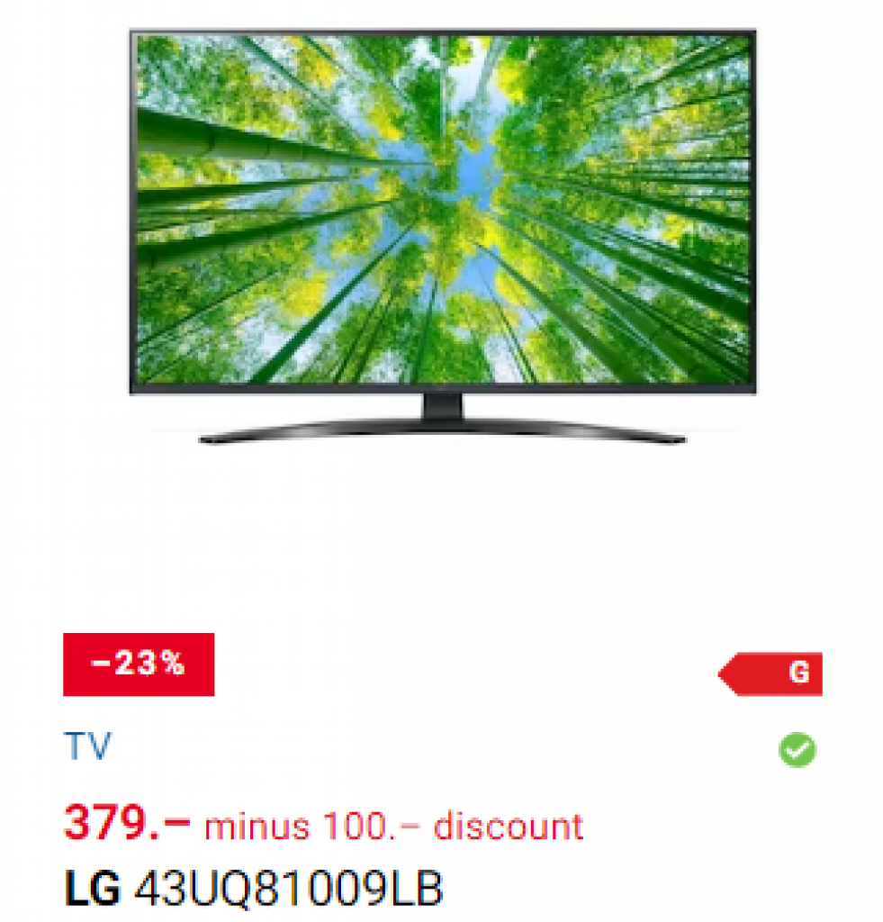 bei digitec.ch gibt es zur Zeit einen LG 43-Zoll TV (43UQ81009LB) für CHF 279.- mit dem Gutscheincode „100LG22“. Das Ding ist Smart, Netflix, Zattoo und Co. können also einfach auf dem TV installiert werden.