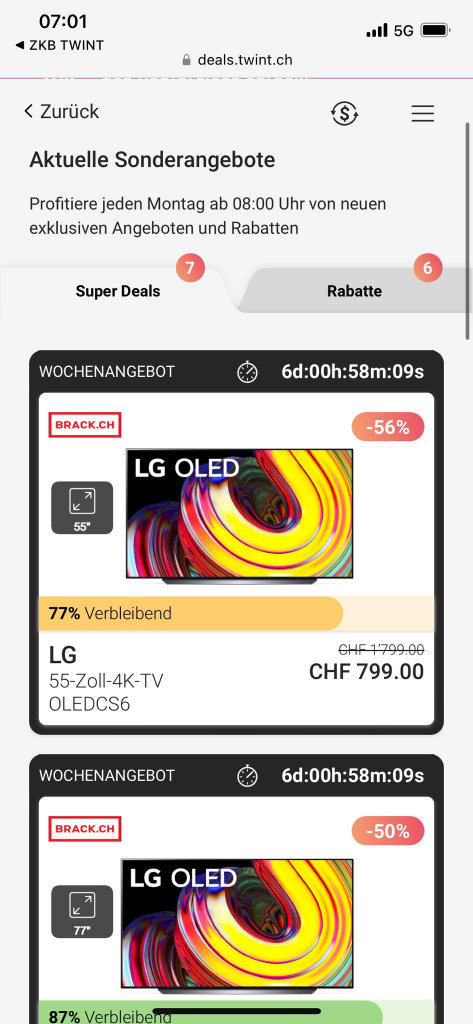 LG OLED55CS und LG OLED77CS für 799 und 1999 Franken, Vergleichspreise vom C2-Modell da ansonsten unrealistisch hoch