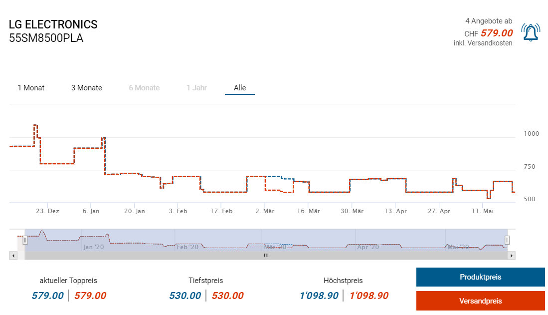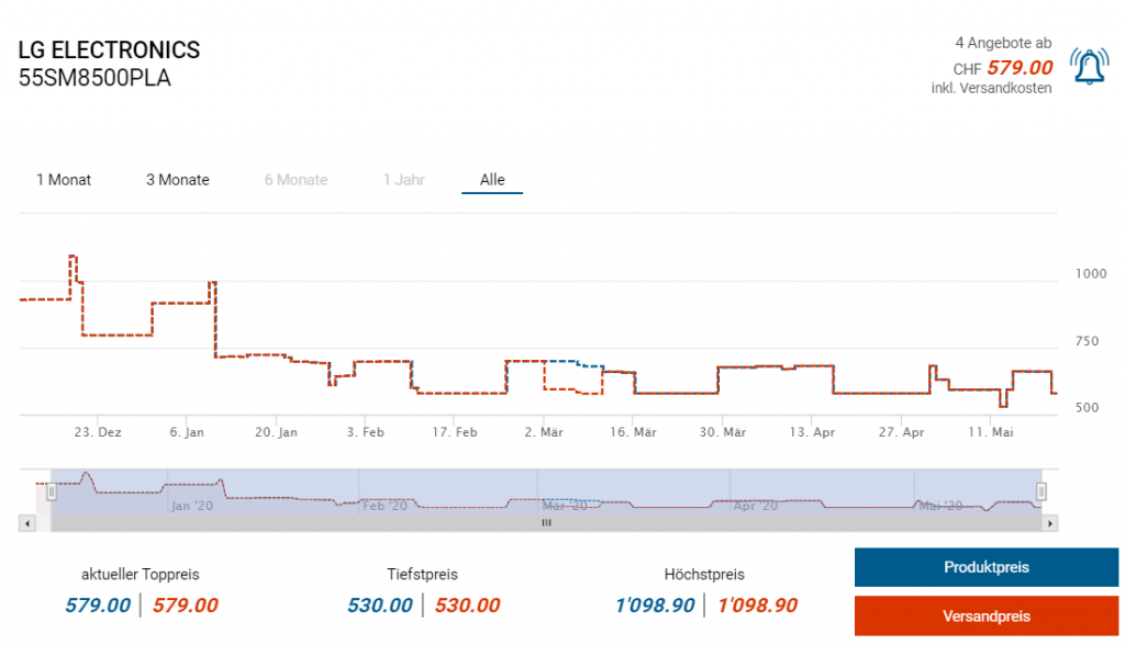 Den Bestpreis für dieses Modell soll es scheinbar vor wenigen Tagen für 530 Franken gegeben haben, habe aber keinen Deal dazu auf Preispirat gefunden.