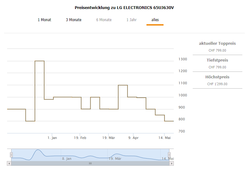 Microspot bietet gerade den 65 Zoll TV 65UJ630V für 799 CHF an -> das ist der beste jemals gemessene Preis vom Black Friday 2017 (übrigens alle Infos zum Black Friday 2018 und einige coole Prognosen findest du auf der Seite www.blackfridaydeals.ch). Mit dem Gutscheincode HFNEU7 bekommst du das Gerät für 789 CHF.
