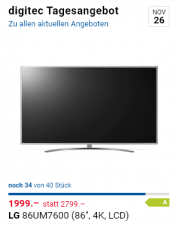 digitec hat den LG 86UM7600 mit 4K, dolby Vision, IPS-Panel, Magic Remote und Alpha 7 Gen2 Prozessor für nur 1999.- im Tagesangebto!!