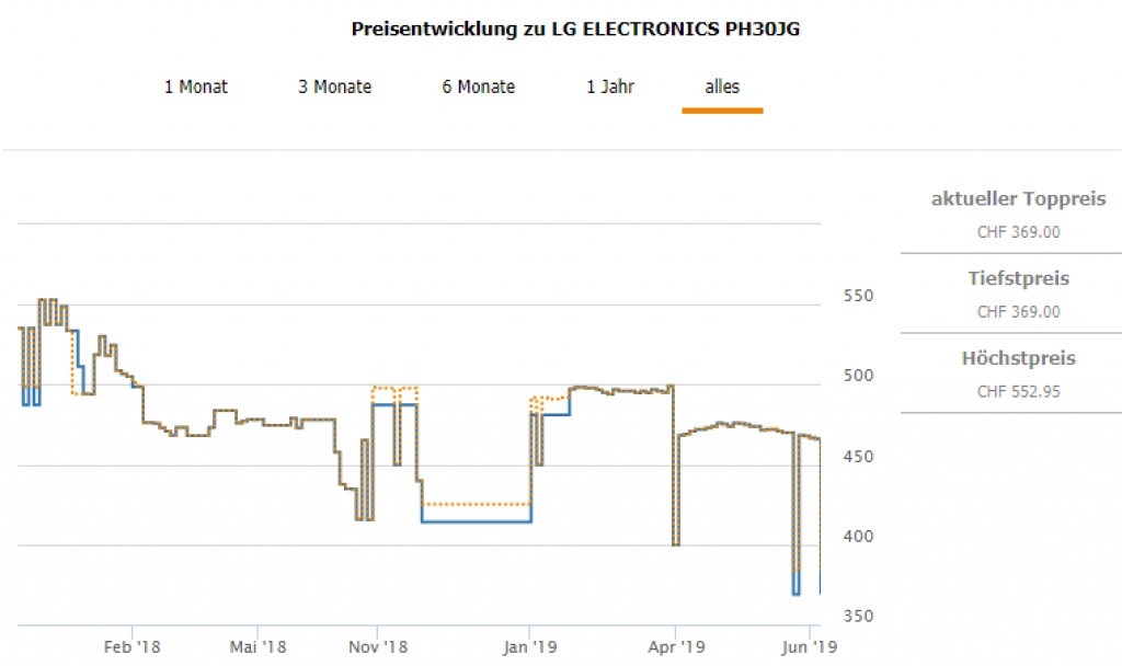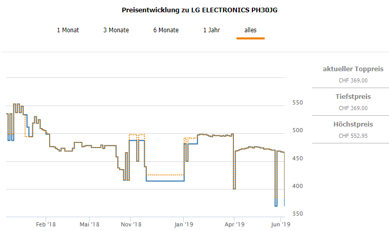 Aktuell gibt’s den LG Beamer PH30JG für CHF 369.- bei Alternate, mit Versandkosten kommt man auf einen realen Preis von CHF 384.-. Das ist ein Bestpreis für das Gerät, den Alternate schon vor ein paar Wochen einmal hatte. Auch wenn die Versandkosten recht hoch sind, rentiert sich das Angebot, da der Vergleichspreis von CHF 465.90 noch einmal deutlich höher liegt.