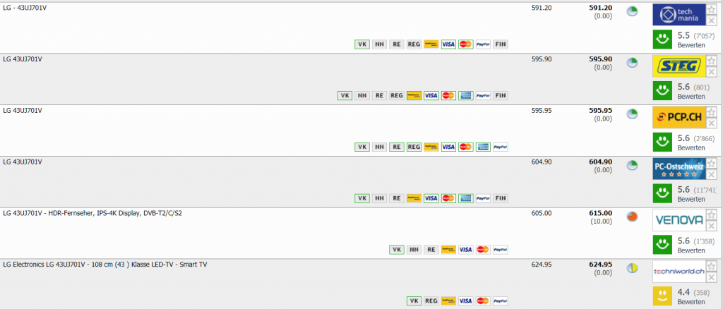 Neu bei digitec gibt’s auch den LG 43UJ701V im WM-Sale für gute CHF 399.- Der zweitbeste Preis in der Schweiz beträgt CHF 591.20 Günstiger als für CHF 492.- konnte man diesen TV in der Schweiz noch nie kaufen. Fairerweise muss man aber sagen: Von den grossen Shops hat nur digitec diesen Fernseher im Angebot, sonst hätte es den TV wohl schon früher etwas günstiger gegeben.