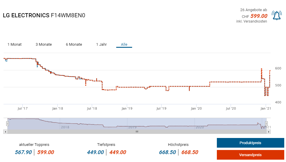 Bei Nettoshop gibts derzeit die Waschmaschne F14WM8EN0 von LG zum Aktionspreis von 499 Franken. Laut toppreise liegt der Vergleichspreis bei 599 Franken. Mit dem bekannten 20 Franken Bon spart ihr nochmal ein kleines Bisschen.