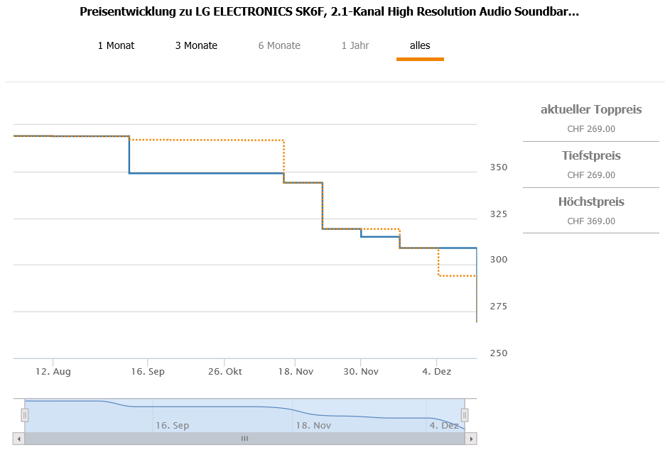 Bestprice bislang waren 294.10 CHF, was aktuell auch der zweitbeste Preis ist (Digitec LG Aktion).