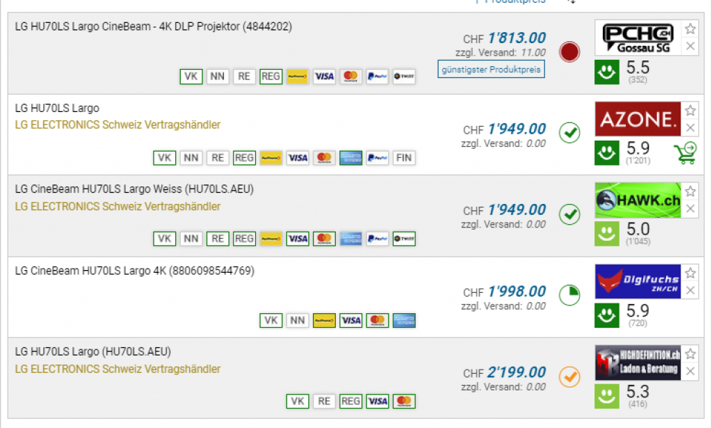 LG HU70LS (4K, 1500lm, DLP, LED) bei Digitec
