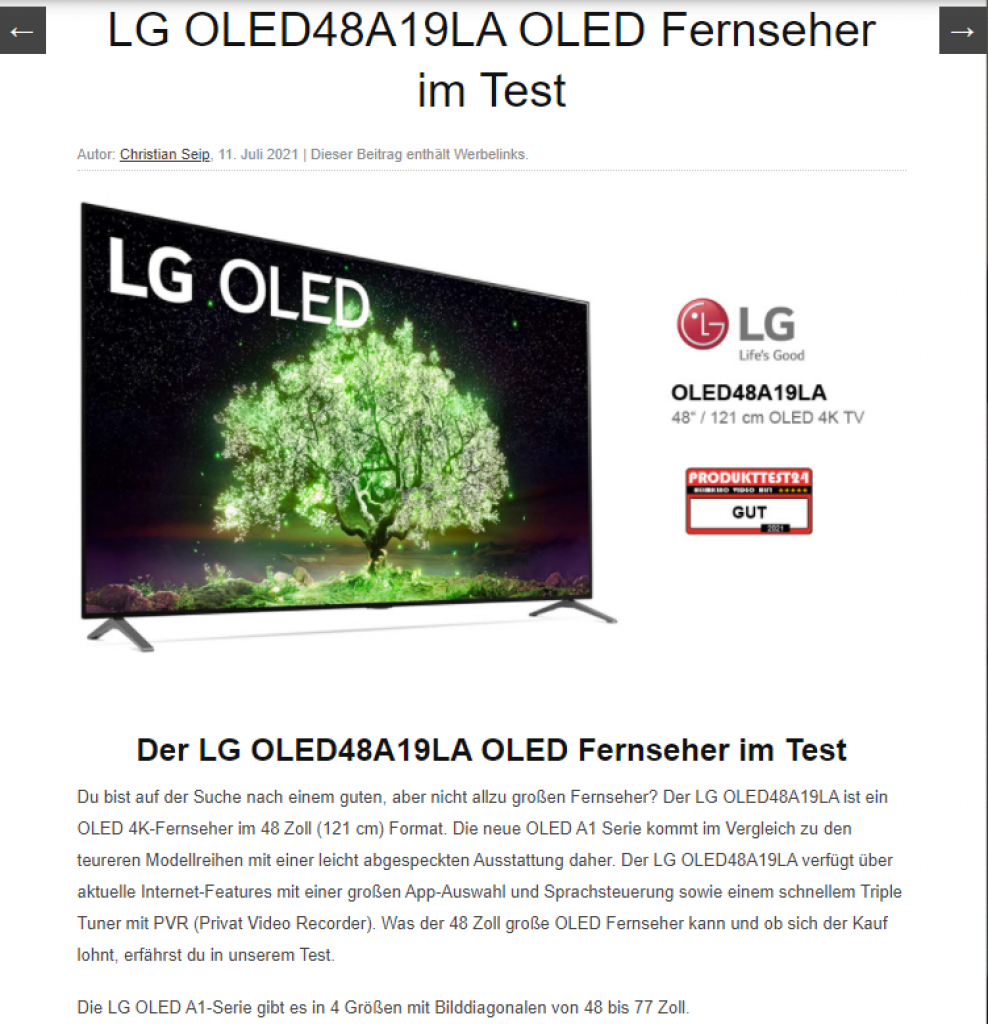 Bei Fust gibt es momentan den LG OLED48A19 Fernseher für den neuen Bestpreis von CHF 879.-. Der vorherige Bestpreis lag bei CHF 881.-. Der zweitbeste Preis beträgt CHF 999.-.