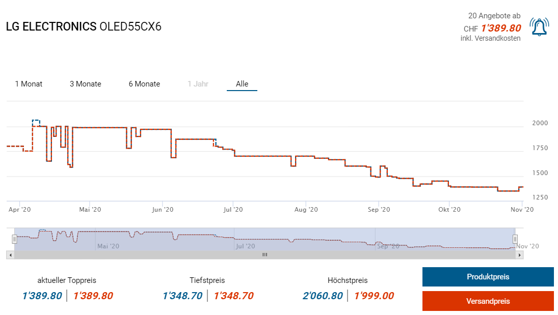 Ende Juni habe ich für dieses 2020er Modell noch CHF 1899 bei Digitec bezahlt. Der Preiszerfall bei neuen TV Modellen scheint immer schneller zu gehen.