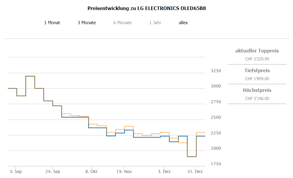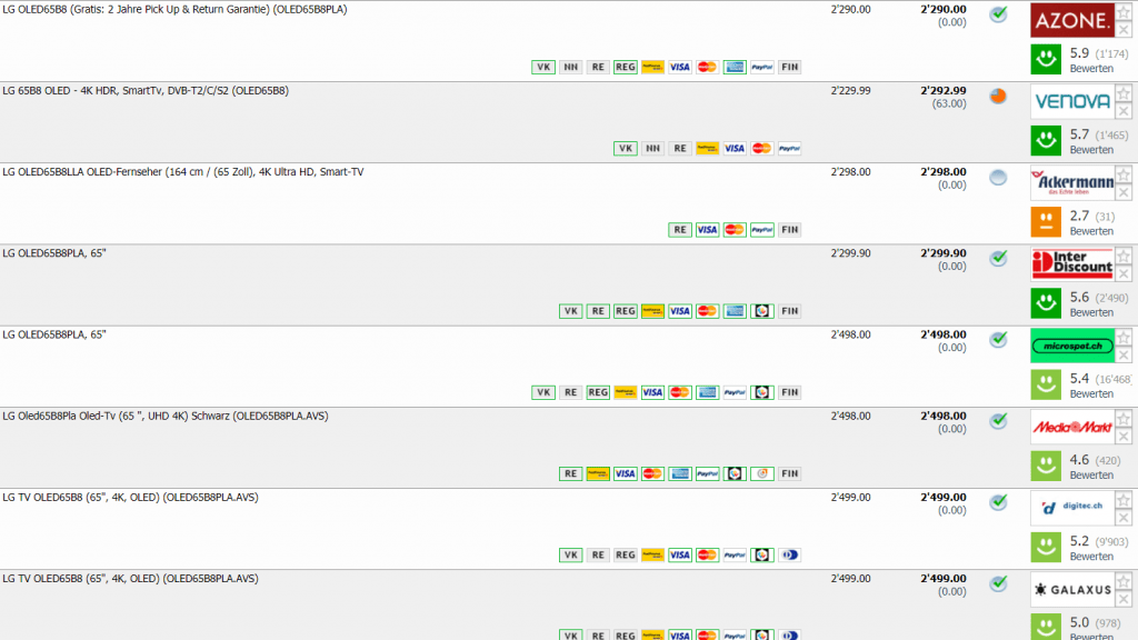 Bei microspot gibt’s gerade den LG OLED65B87LC 65″ Fernseher für CHF 1’799.- Zweitbester Preis in der Schweiz ist bei CHF 2’229.99, bisheriger Bestpreis war bei CHF 1’899.- laut toppreise.