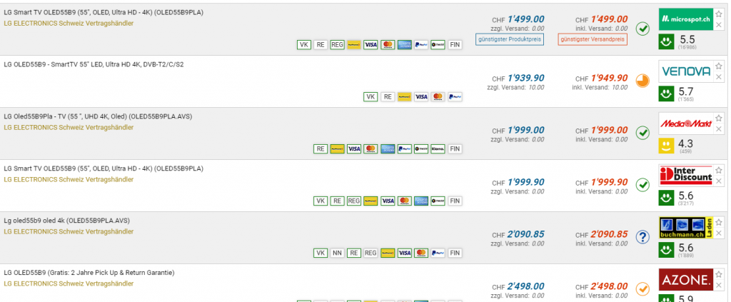 Den LG Smart TV OLED55B9 Fernseher gibt es bei Microspot für den neuen Bestpreis von CHF 1499.–. Der vorherige Bestpreis lag bei CHF 1799.–. Der zweitbeste Preis liegt bei CHF 1949.90.