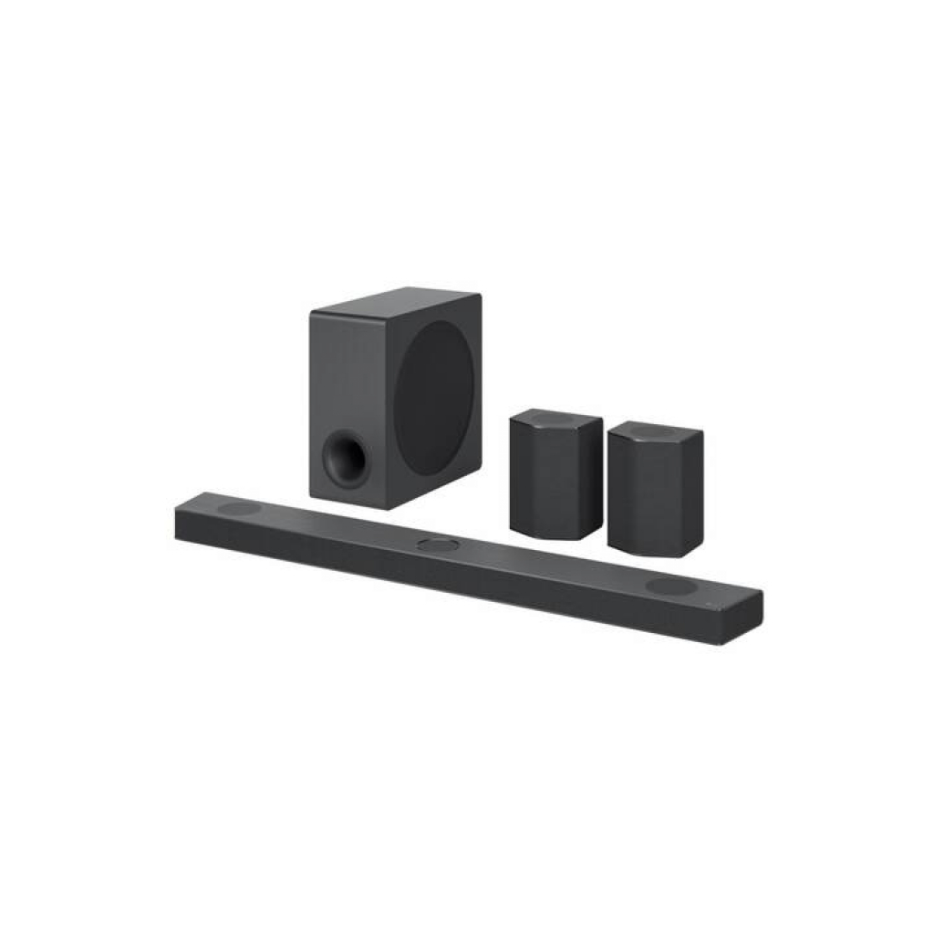 - Ultimativer und immersiver 9.1.5-Kanal-Sound mit 810 Watt Gesamtleistung und Surround-Sound – eine Soundbar mit 3 «Upfiring»-Lautsprechern (6 Kanäle und 135° Klangabdeckung), 2 kabellose 3-Wege-«Upfiring»-Rücklautsprecher und ein kabelloser Subwoofer