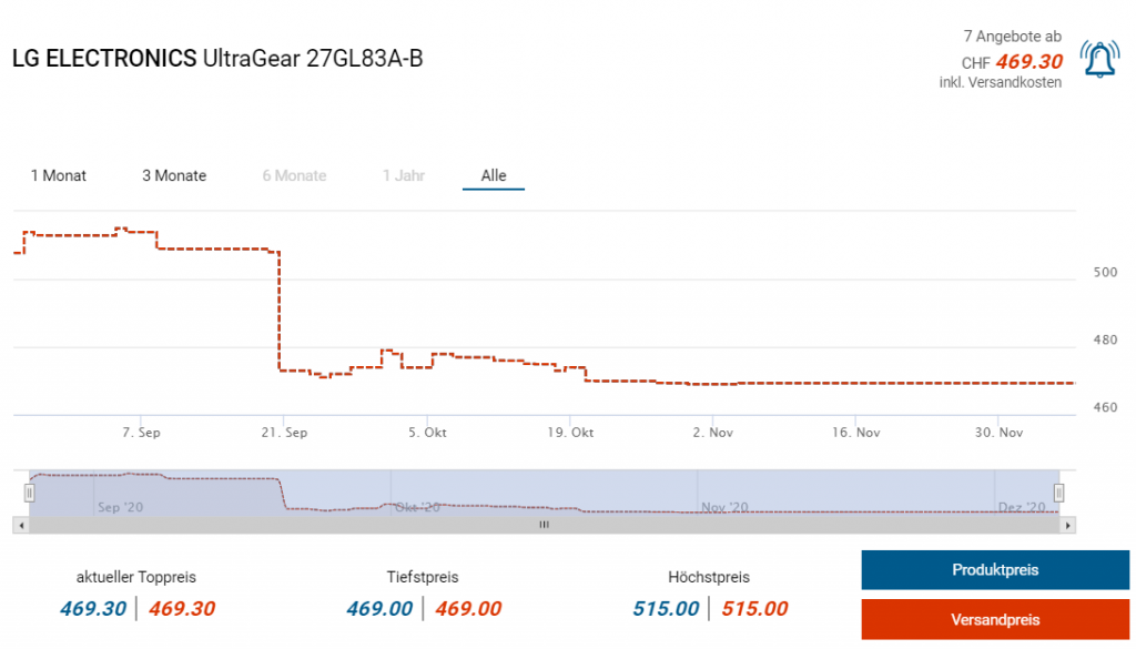 Bei Amazon gibts derzeit den Gaming-Bildschirm LG 27GL83A-B zum Aktionspreis von knapp 370 Franken, laut toppreise starten die Preise hierzulande derweil bei CHF 469.30. Scheinbar sollte es ein neuer Bestpreis sein, ich denke aber, am Black Friday ein ähnliches Angebot gesehen zu haben.