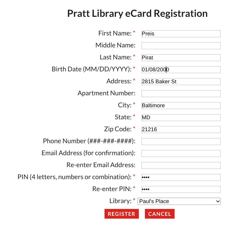 - Bei Branch “Enoch Pratt Free Library” auswählen