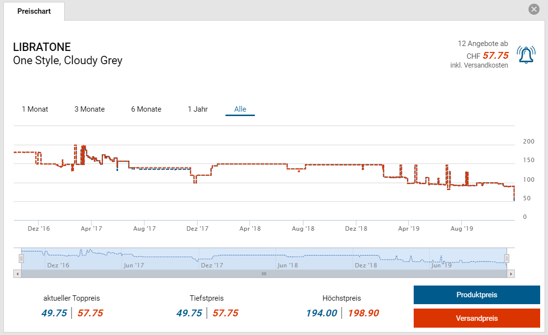 Hier unten findet ihr den Preischart für die graue Variante