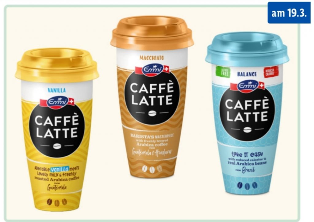 Am kommenden Freitag, 19.03., gibt es bei Lidl diverse Emmi Caffè Latte für 1.11 CHF pro Stück (ab 2 Stück).