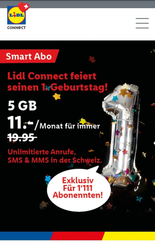 Zum Geburtstag von Lidl Connect gibt es für die ersten 1’111 Kunden das Lidl Connect Abo für 11.00 CHF für immer.