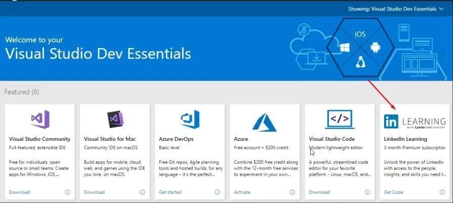 3. Klicken Sie auf Get code under in der Einfügung „LinkedIn: LinkedIn Learning“