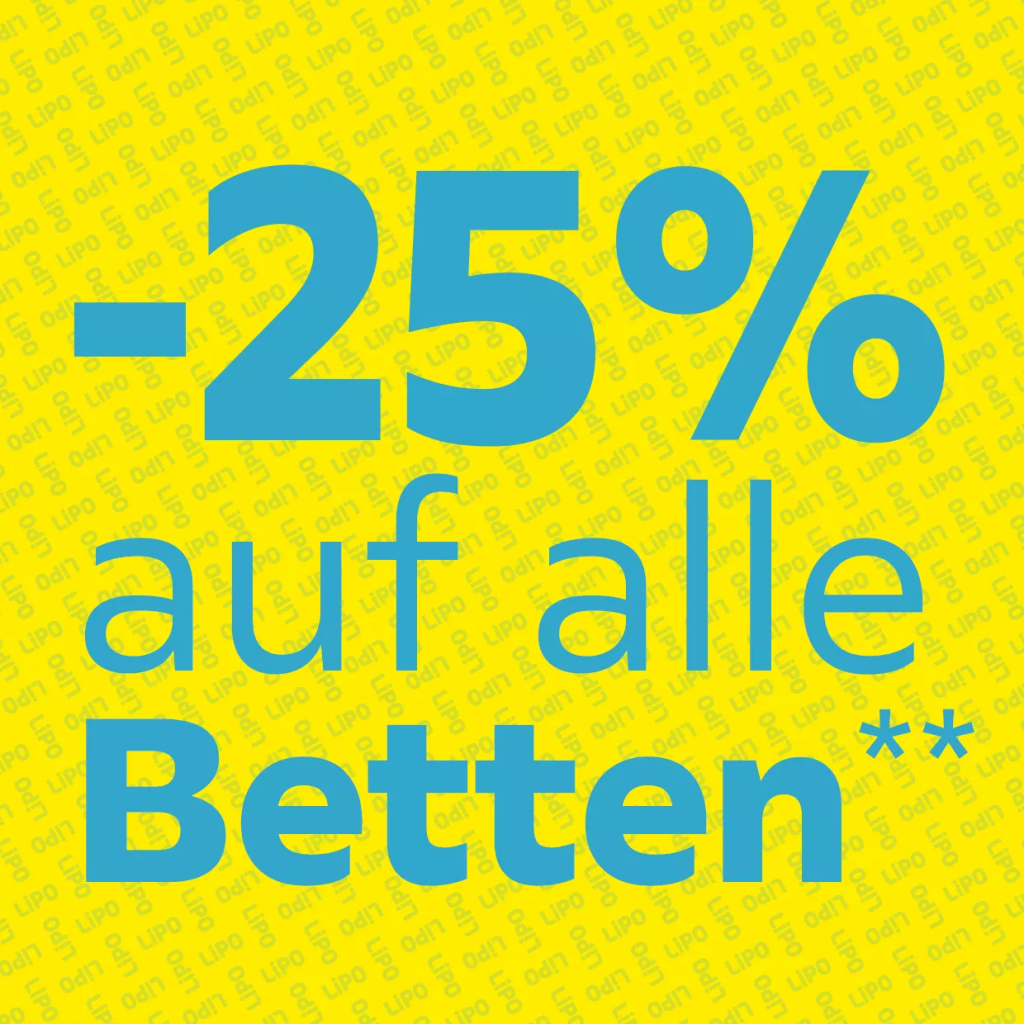 Neue Aktion bei LIPO, vielleicht für jemanden interessant. Gibt 25% Rabatt auf Betten, vor allem die Boxspringbetten dürften so interessant sein. Am besten jeweils per Google Bildsuche vergleichen, XXXLutz und Conforama sind ja schliesslich Schwesterunternehmen. Nicht unwahrscheinlich, dass sie ähnliche Produkte anbieten. Aktion läuft bis 13.05.
