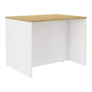 Kücheninsel Olten - mit Einlegeböden, Korpus weiss, 4 Einlegeböden Artisan, Eiche Nachbildung, Arbeitsplatte Artisan Eiche Nachbildung, Rückseite offen, Masse: 120 cm breit, 90 cm hoch, 90 cm tief, zerlegte Ware.