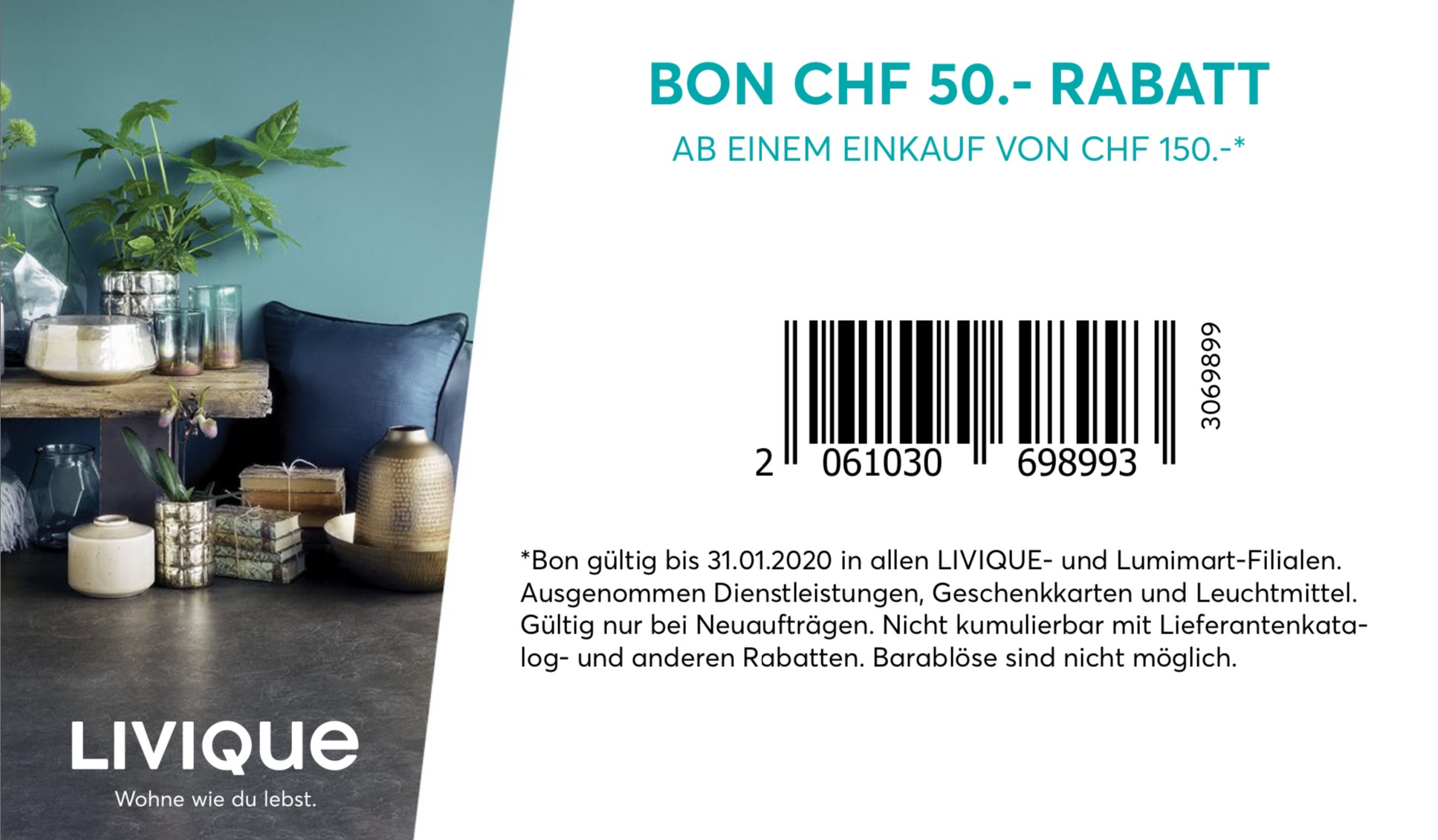 EDIT! Mit dem Code LQGB3519-1RX kann auf dem Online Shop neben den 30% auf Wohnaccessoires auf einen Einkauf von CHF50.- nochmals CHF 20.- sparen und erst noch kostenloser Versand! Bis am 07.10.2019 ist dieser zusätzliche Gutschein gültig! Daher fast 55%!!!
