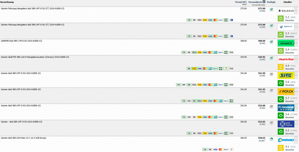 Bei digitec gibt es aktuell 4 Stück des LKW Navi GARMIN dezl 580LMT-D für je 275.- CHF.