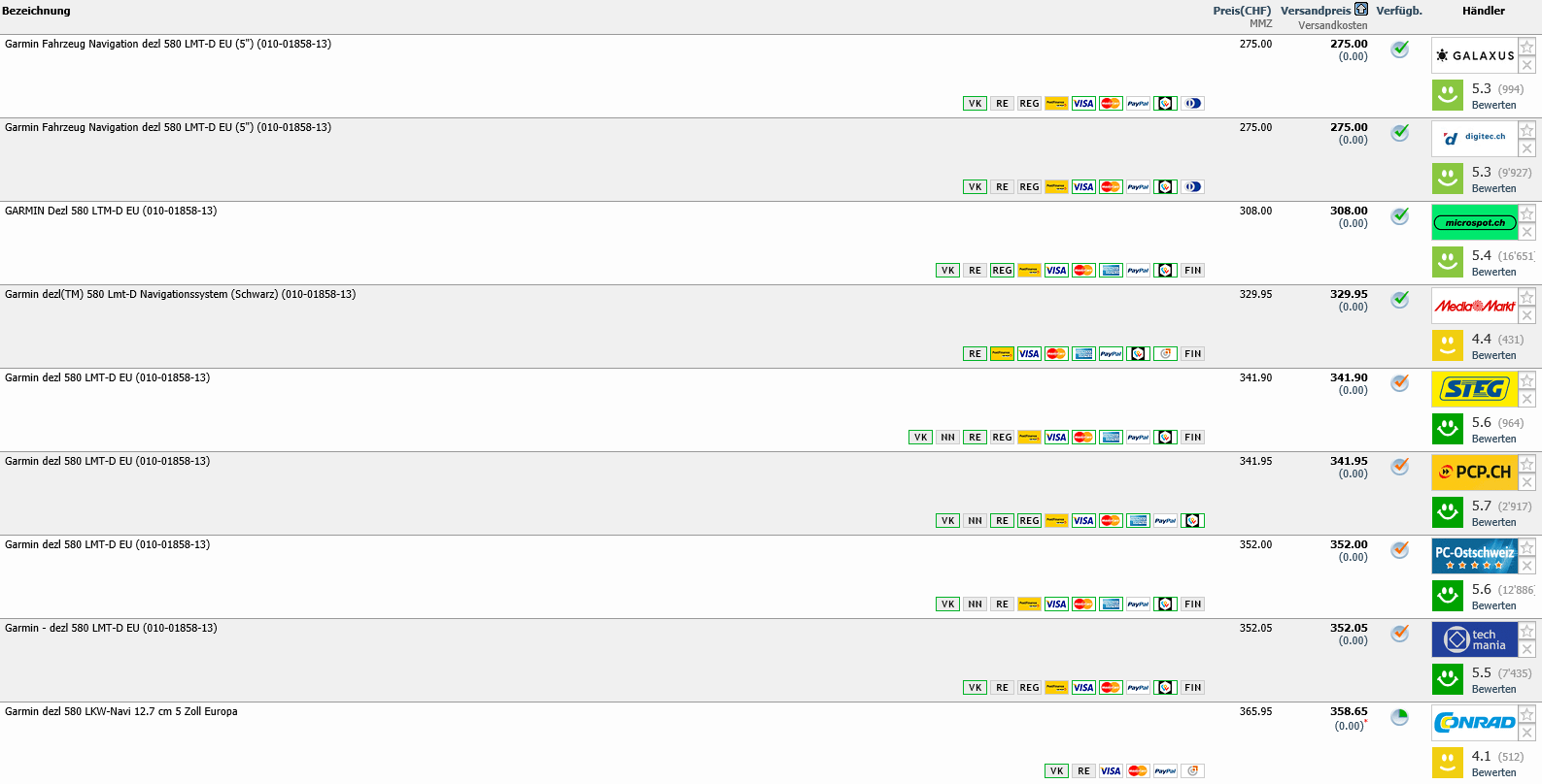 Bei digitec gibt es aktuell 4 Stück des LKW Navi GARMIN dezl 580LMT-D für je 275.- CHF.