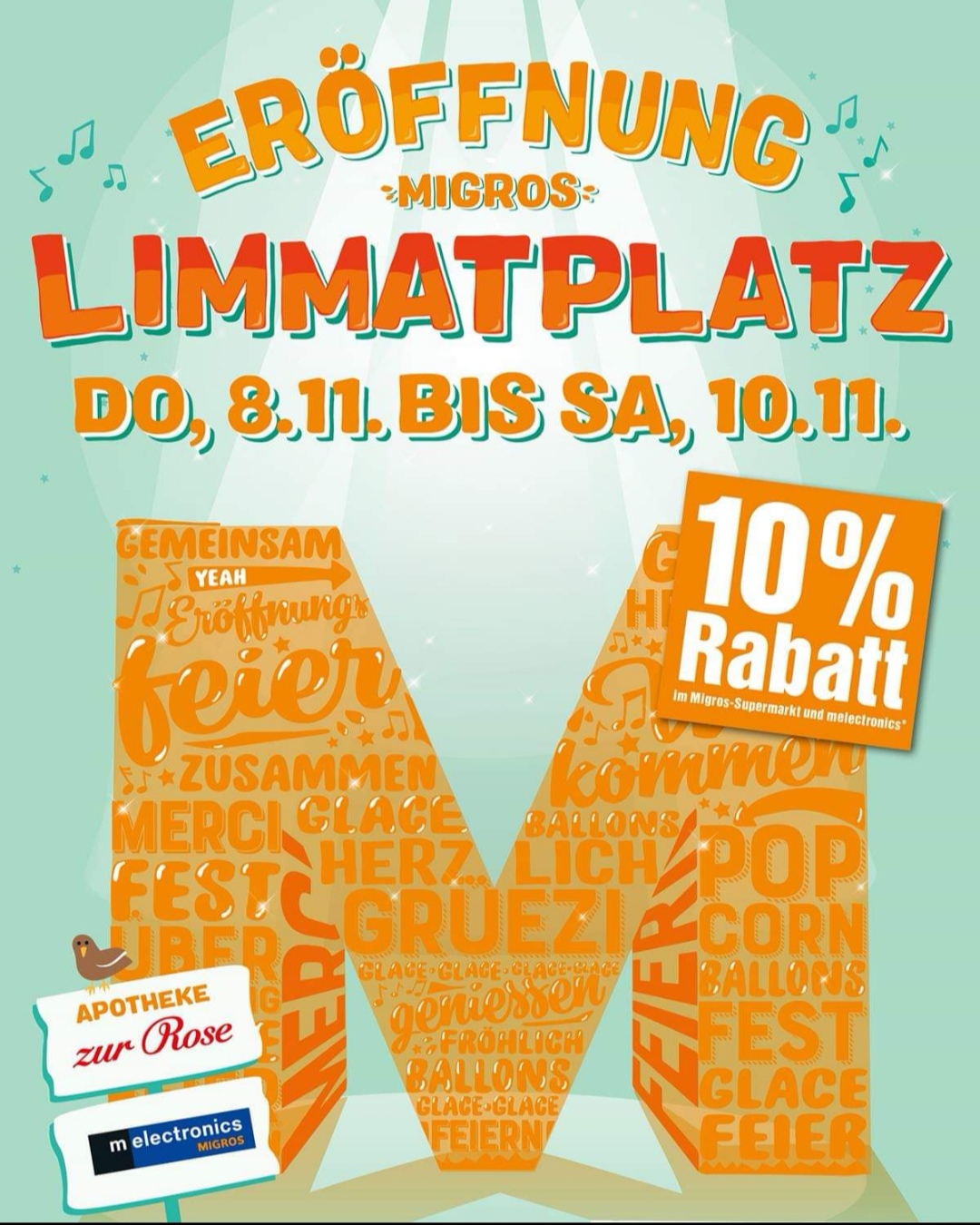 Vom Donnerstag, 08.11. – Samstag 10.11. bekommst du rund 10% Rabatt im Migros-Supermarkt und melectronics in der Filiale Limmatplatz in Zürich.