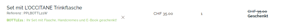 Vielleicht für jemanden interessant, der sowieso gerne bei L’OCCITANE bestellt. Ab 35 CHF Bestellwert kriegt ihr mit dem Code Bottle21 ein Gratis Set dazu.