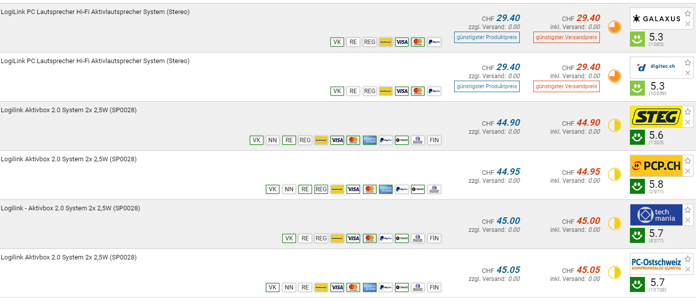 Bei Galaxus und dem Partner Digitec gibt es die LogiLink Hi-Fi Aktivlautsprecher für den Bestpreis von CHF 29.40. Der vorherige Bestpreis war CHF 31.90. Der zweitbeste Preis beträgt CHF 44.90.