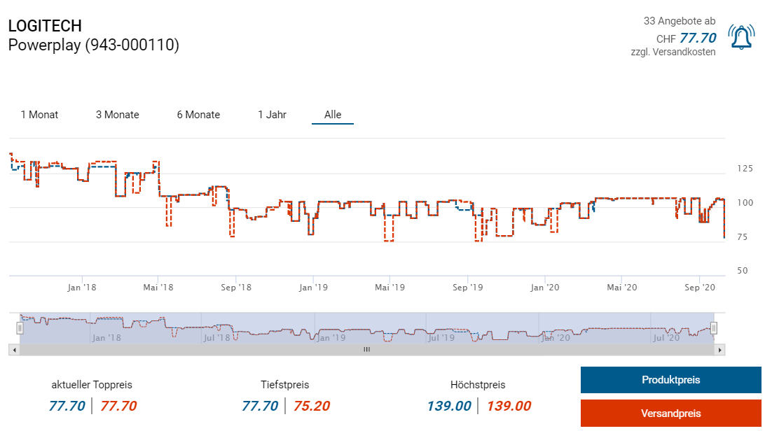 Bei melectronics gibts derzeit das kabellose Ladesystem von Logitech, dem G Powerplay zum Aktionspreis von CHF 77.70. Mit dem Newsletter-Gutschein von melectronics (Login erforderlich) spart man zudem 10 Franken, was dann der Dealpreis ist.