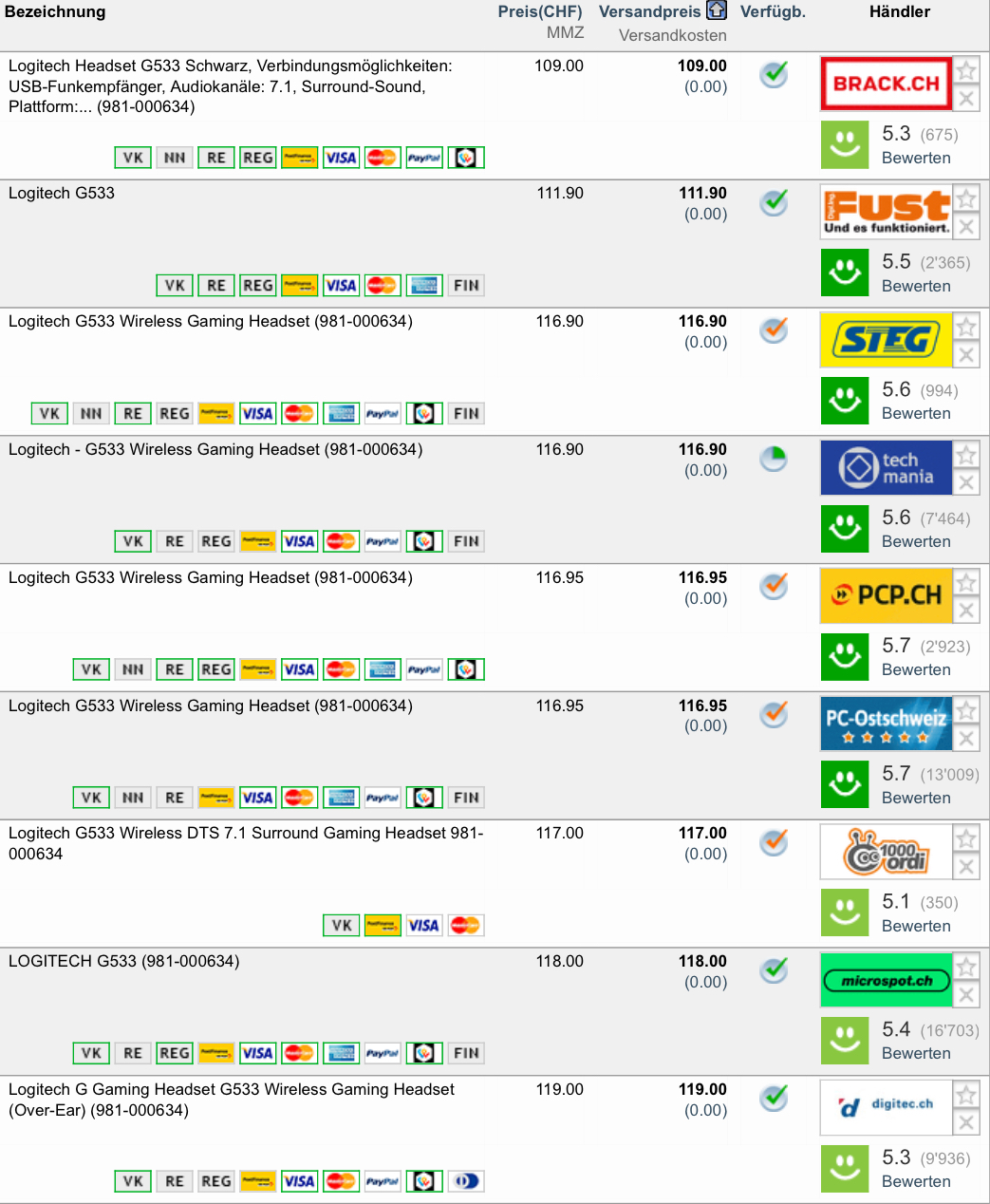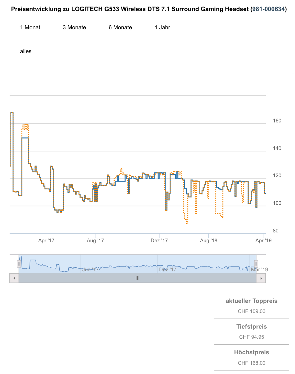 Bester Preis bislang waren 87.- CHF und der zweitbeste Preis ist bei 109.- CHF.