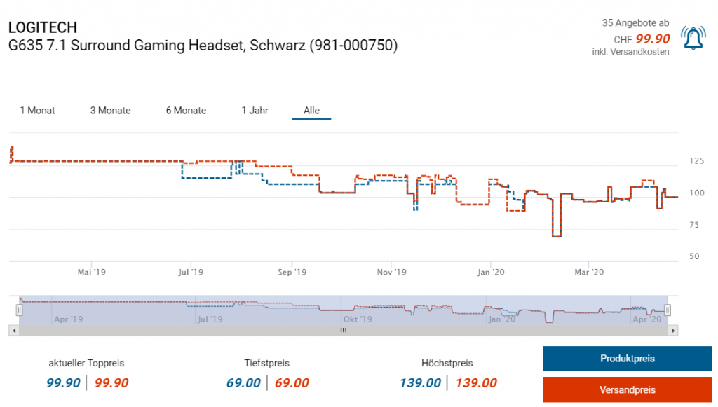 Bei amazon.de gibts gerade das kabelgebundene Gaming-Headset G635 von Logitech zum guten Preis. Tiefstpreis in der Schweiz lag laut toppreise bei 69 Franken vor einigen Wochen.