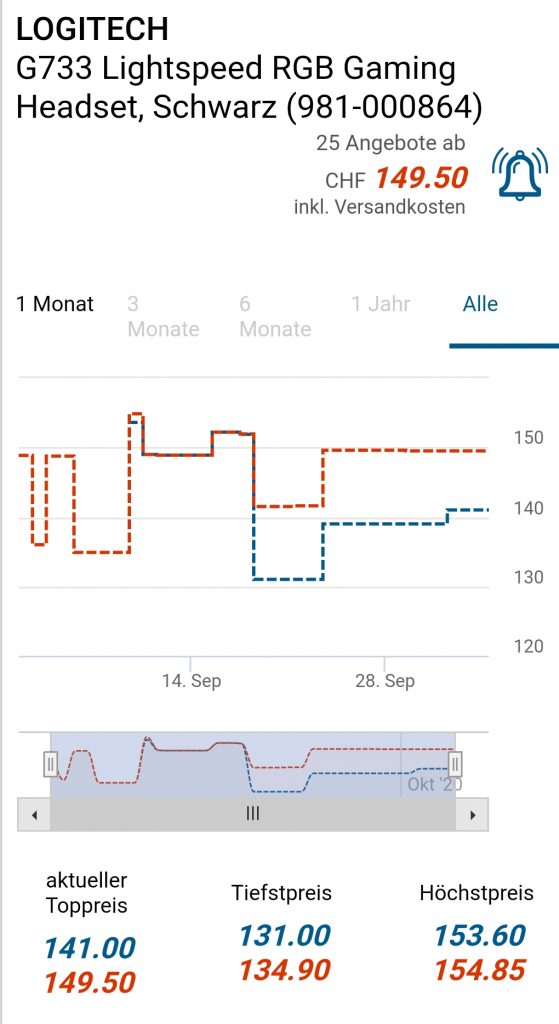 Bei Amazon Spanien gibts derzeit die Gaming-Kopfhörer G733 von Logitech zum Aktionspreis von 104 Franken. In der Schweiz starten die Preise für irgendeine Farbe ab CHF 143.-