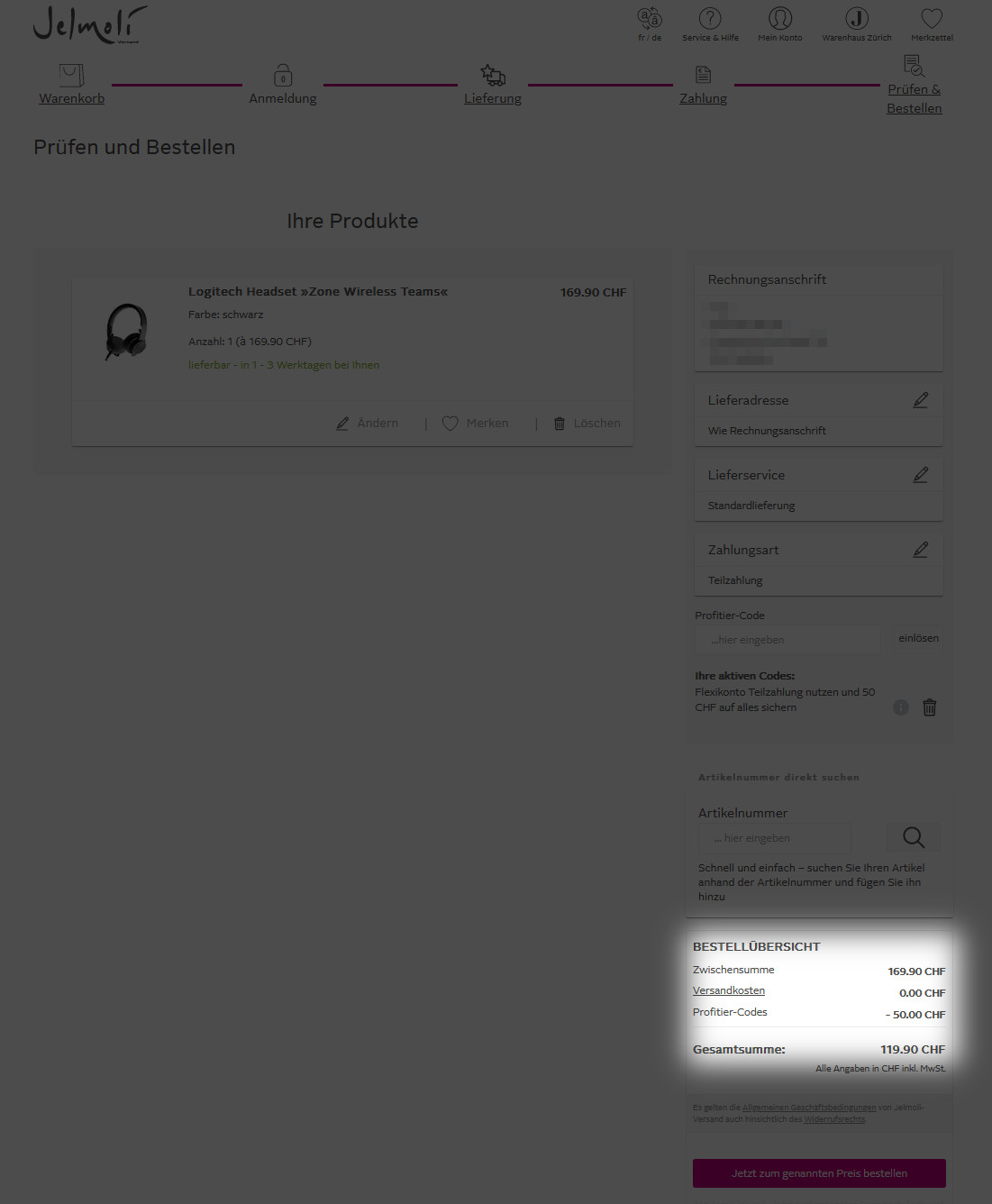 Also wie Teilzahlung? Ich möchte das Produkt für 105.90fr kaufen alles sofort geht das?