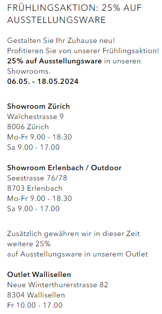 Bei Zingg-Lamprecht gibt es aktuell 25% Rabatt auf Ausstellungsware: