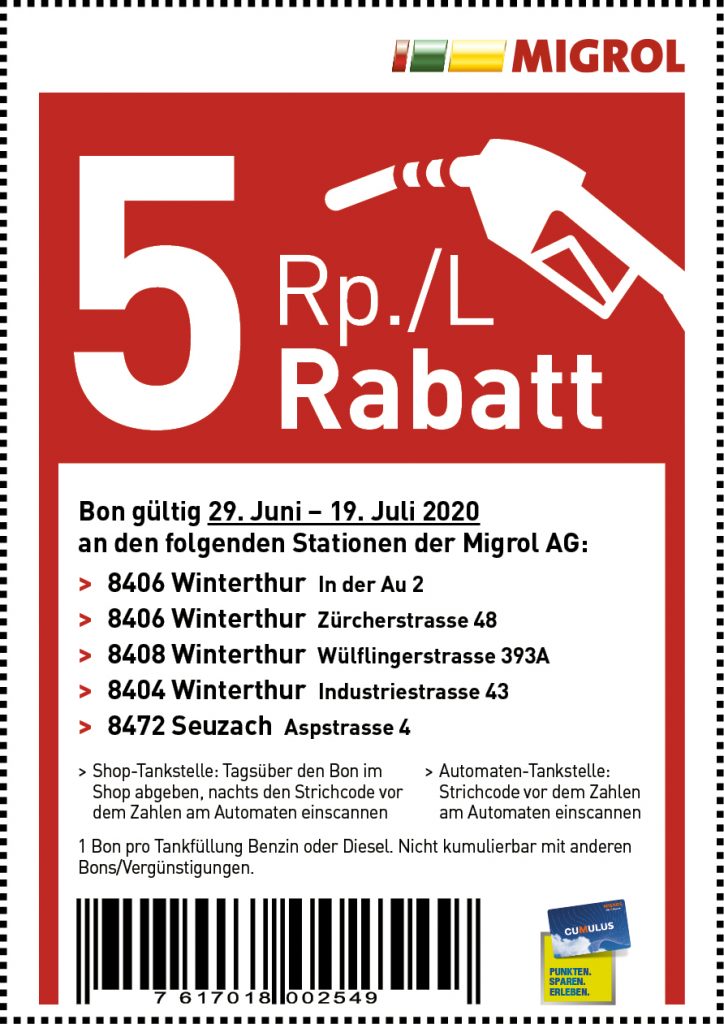 An den Migrol-Tankstellen in Winterthur gibt es 5 Rp./L Rabatt