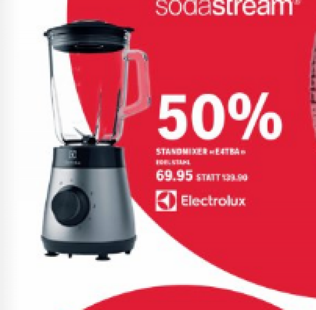 Bei Coop City gibt’s den Edelstahl Standmixer E4TBA von Electrolux im Sale zum halben Preis, anstatt CHF 139.90 kostet er nur noch CHF 69.95. Solange Vorrat.