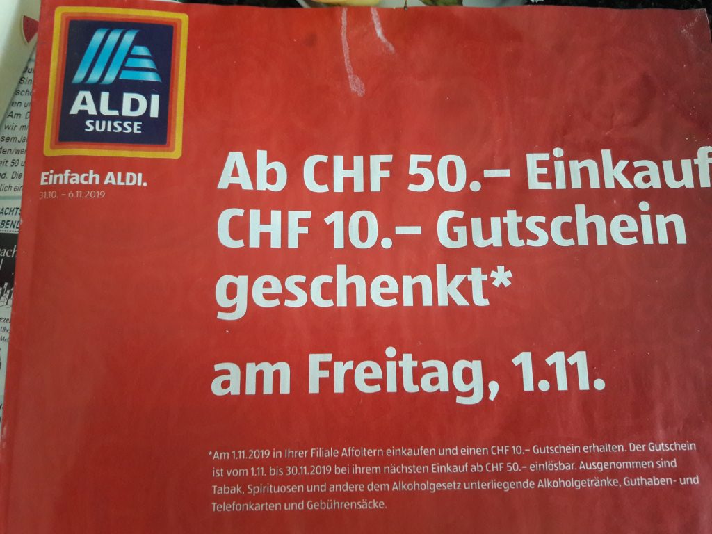 10 CHF Gutschein bei 50 CHF Einkauf bei Aldi Suisse in Affoltern am Albis. Nur heute. Sorry bin spät dran aber vielleicht nützt es noch jemand.