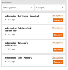 Online kann man die Mavic Pro in den Filialen (wo noch verfügbar) reservieren.