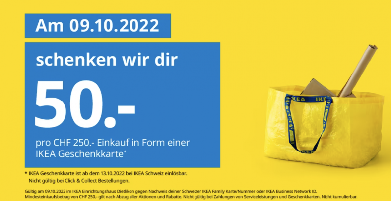 Im Ikea Dietlikon gibt es am Sonntag pro CHF 250.- eine Gutscheinkarte von 50.-