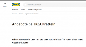 Das Möbelhaus IKEA hat an diesem Sonntag, dem 26.03. geöffnet! Ausserdem profitiert ihr ab einem Einkauf von 100 Franken von einer Geschenkkarte im Wert von 15 Franken! Die Promotion ist damit leider nicht gleich gut wie die 50 ab 250 Aktion, aber gerade jetzt vor dem Zügeltermin wohl ganz passend für die neue Wohnung 🙂