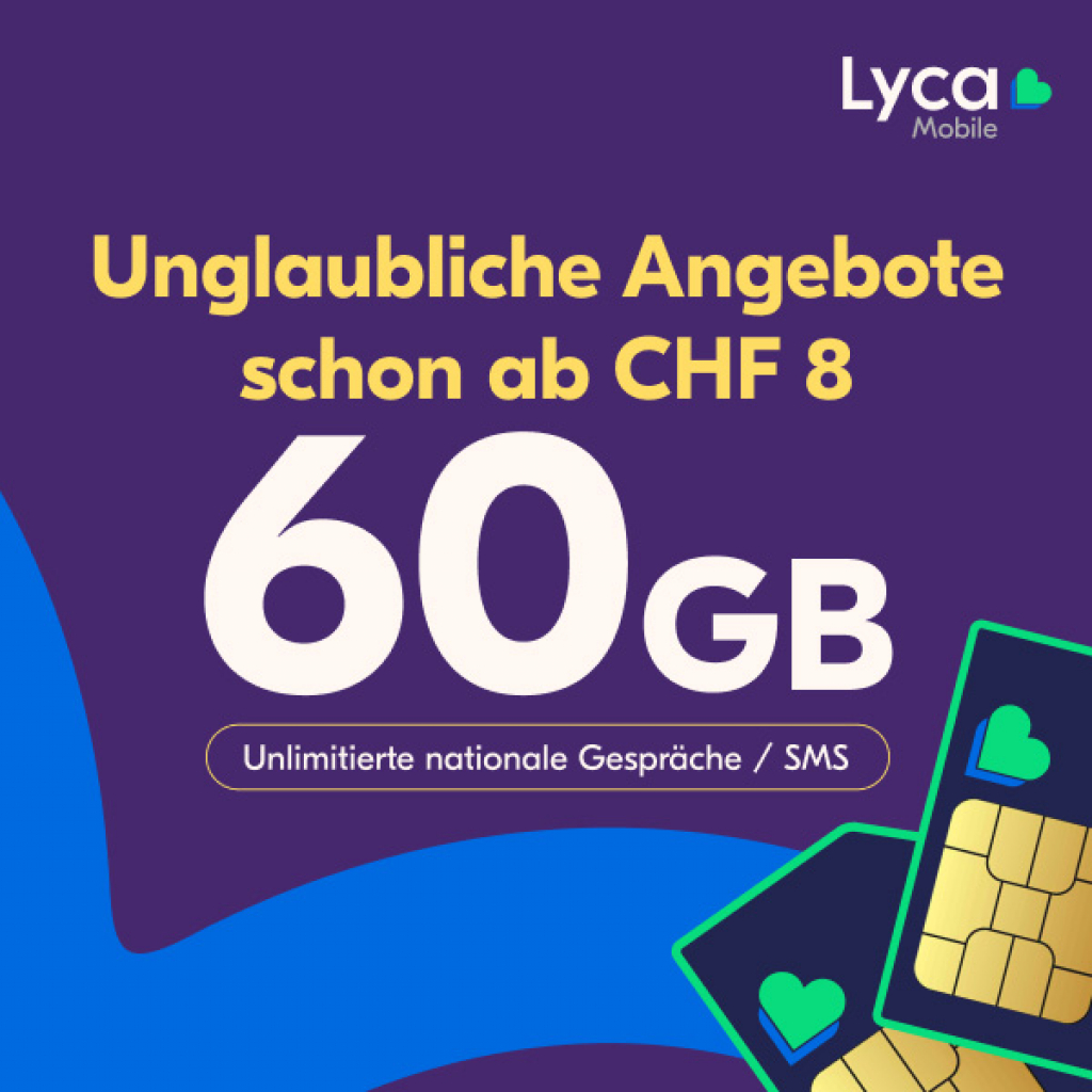 Wichtig zu beachten: Der Preis für diese Abos gilt, solange man keinen Zahlungsunterbruch hat. Am besten verwendet ihr also eine Kreditkarte welche immer genügend Guthaben drauf hat. Das Angebot gilt auch nur für Neukunden. Lyca Mobile nutzt das Salt-Netz. Wie lange das Angebot noch gilt ist nicht bekannt, deswegen solltet ihr euch nicht allzu lange Zeit mit dem Abschluss lassen.